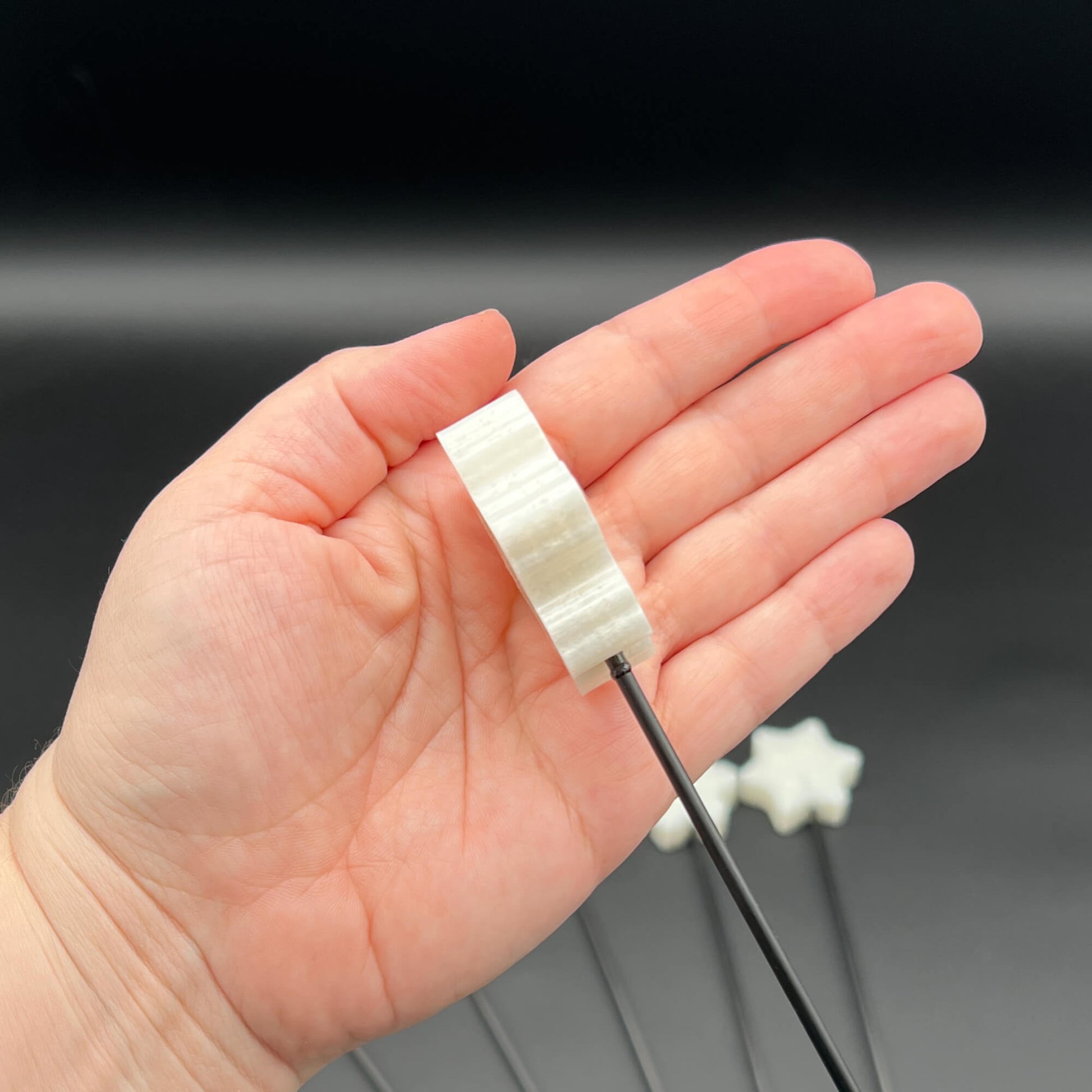 Please note that these are made by hand so each snowflake may not be perfectly straight or in alignment with the rod.